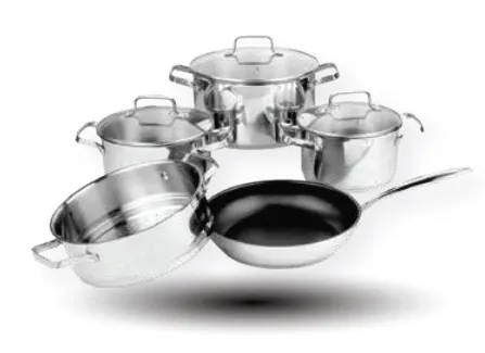 Bộ nồi inox 304 cao cấp, đáy đa lớp, dùng cho mọi loại bếp.